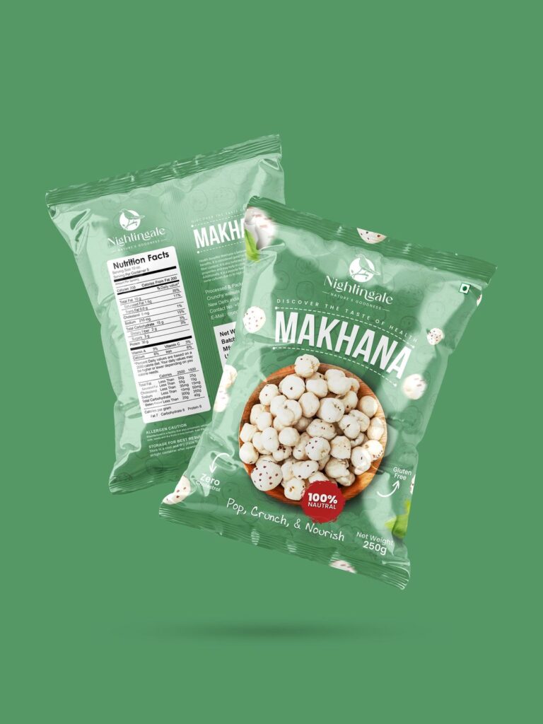 Since the awareness among consumers about healthful eating is growing, Makhana has positioned itself as a guilt-free and nutritious snack. But, when there are multiple brands that offer similar products, it can be difficult to distinguish. The packaging design is the initial point of contact between the item and buyer.